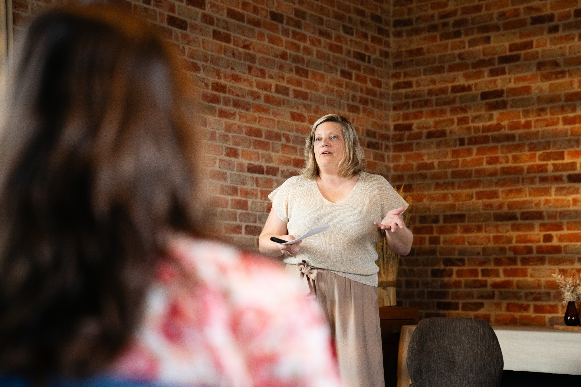 Melissa beschikt over het bijzondere talent om een warme en veilige sfeer te creëren. Ze stelt elke deelnemer op haar gemak, luistert naar elk verhaal, verbindt deelnemers oprecht en helpt te reflecteren op een rustige, respectvolle manier.